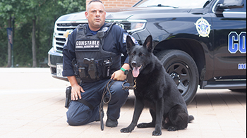 The Montgomery County Precinct 3 Constables office utilizes two canines who are qualified for criminal tracking and apprehension along with narcotics detection. Both canine teams have not only been successful in apprehending violent suspects but have also removed dangerous narcotics, guns and many other illegal contraband from the streets of Montgomery County and surrounding areas. Both canines live full time with their handlers and must pass a strenuous selection process before being appointed to the handler position.